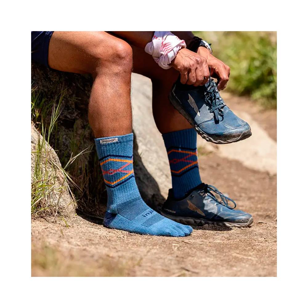 Optimizado para carreras largas y rutas exigentes en terrenos irregulares, los calcetines Injinji Trail Midweight Crew llevan la comodidad en montaña a otro nivel. La altura Crew evita la entrada de polvo y la suciedad, mientras que las fibras COOLMAX® absorben la humedad y mantienen los pies secos. El soporte en el arco y el exclusivo diseño de 5 dedos minimizan las ampollas, eliminan la humedad y optimizan el uso total del pie en los senderos. Además, la amortiguación de grosor medio aporta un extra de comodidad muy valorado en el trail running.