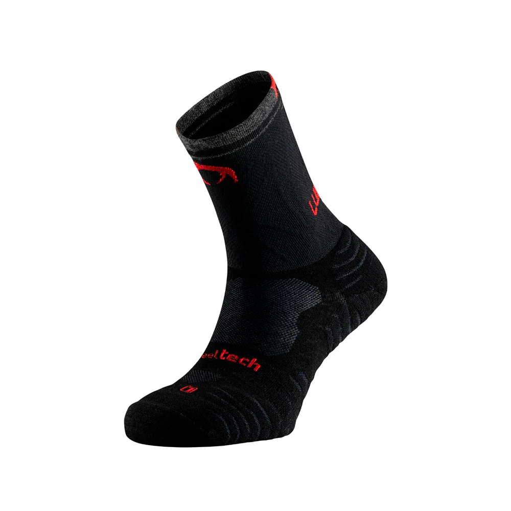Los calcetines Lurbel Tundra Pro son la elección definitiva para los corredores y corredoras de montaña de alto rendimiento que se aventuran en largas y ultra distancias, incluyendo ultras de 60 kilómetros o más. Estos calcetines térmicos unisex, fabricados con lana merino, ofrecen una combinación excepcional de comodidad, protección y rendimiento en condiciones extremas.
