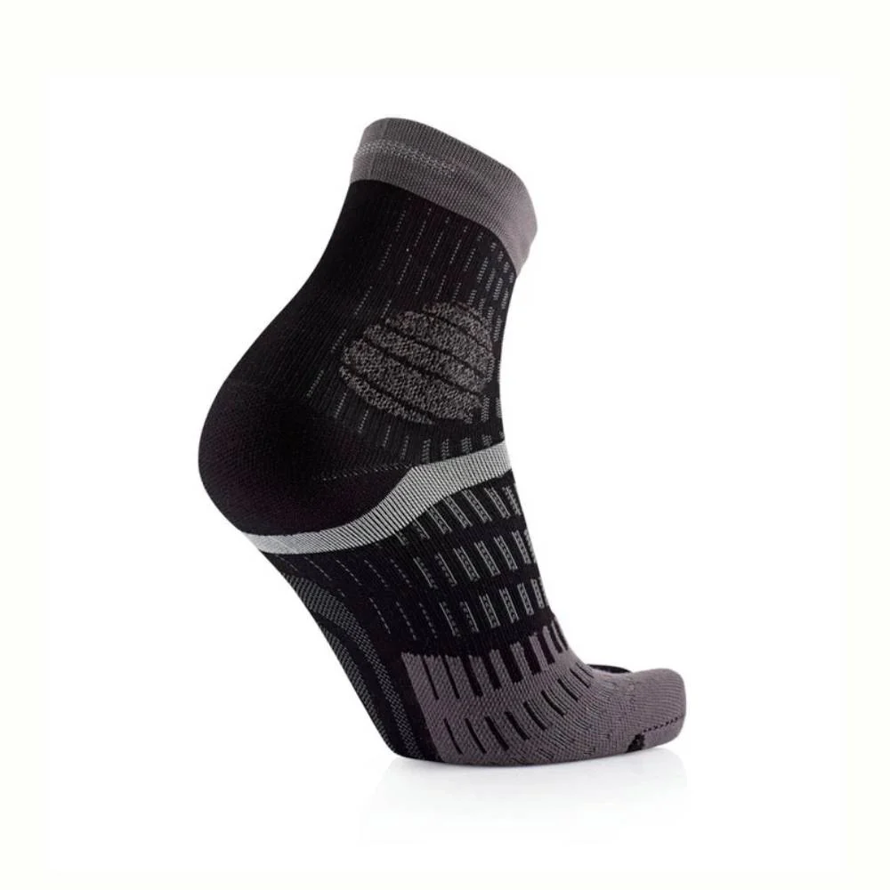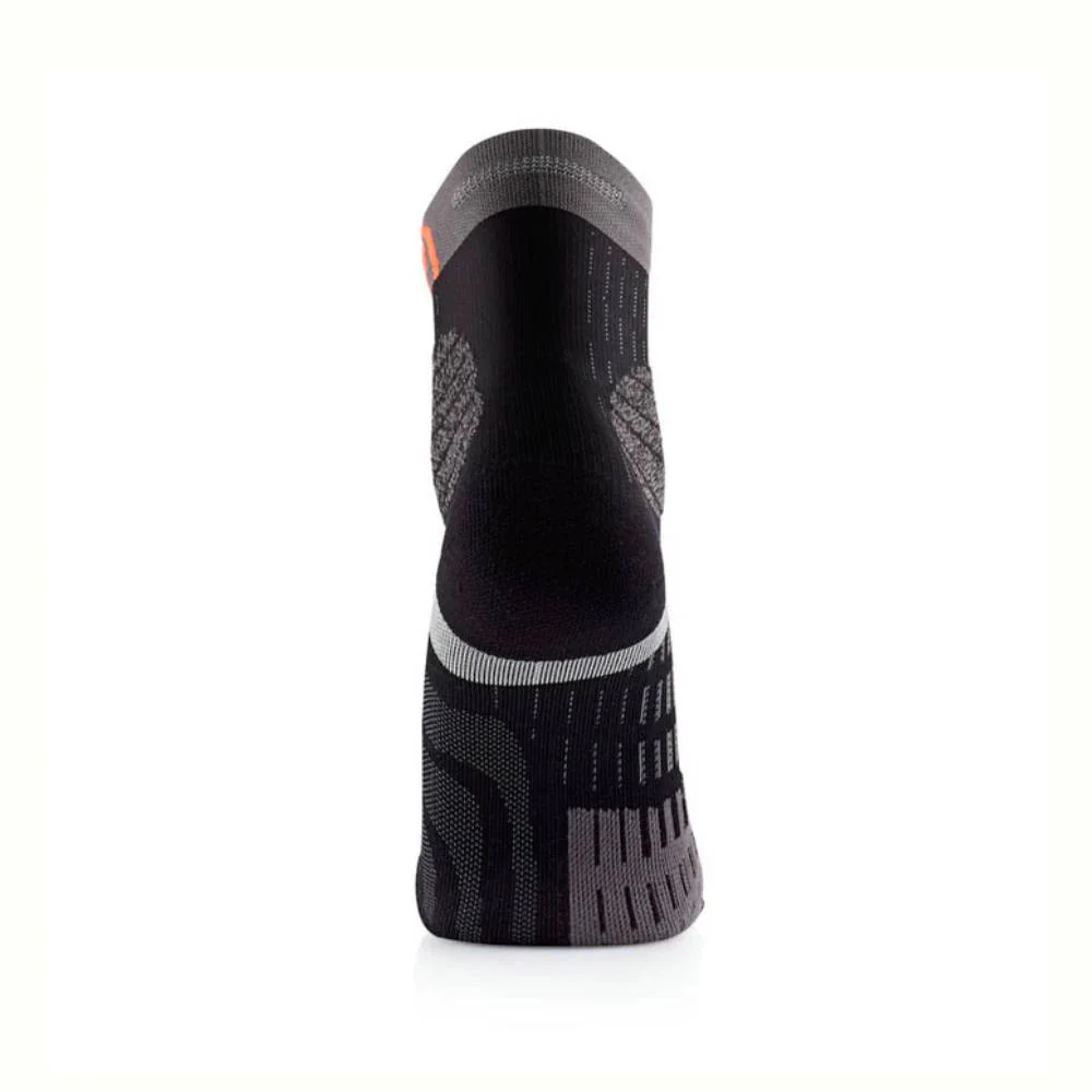 Estos calcetines de trail running también cuentan con zonas de protección estratégicas en el tobillo, talón y dedos, que absorben impactos y mejoran la sensación de seguridad en terrenos técnicos. La banda de sujeción en el tobillo proporciona mayor estabilidad, mientras que la tira de agarre evita deslizamientos en el interior de la zapatilla.