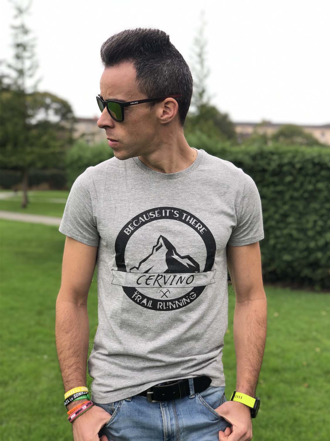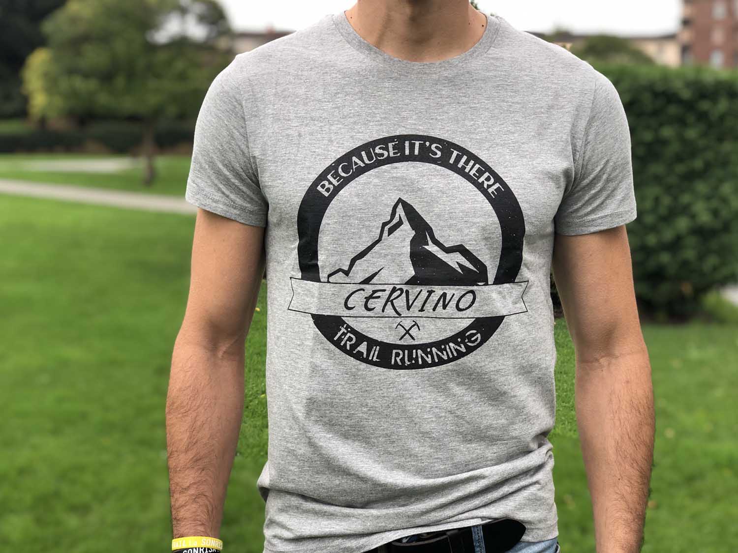 Camiseta «Cervino» de algodón biológico en color gris con serigrafía en negro.