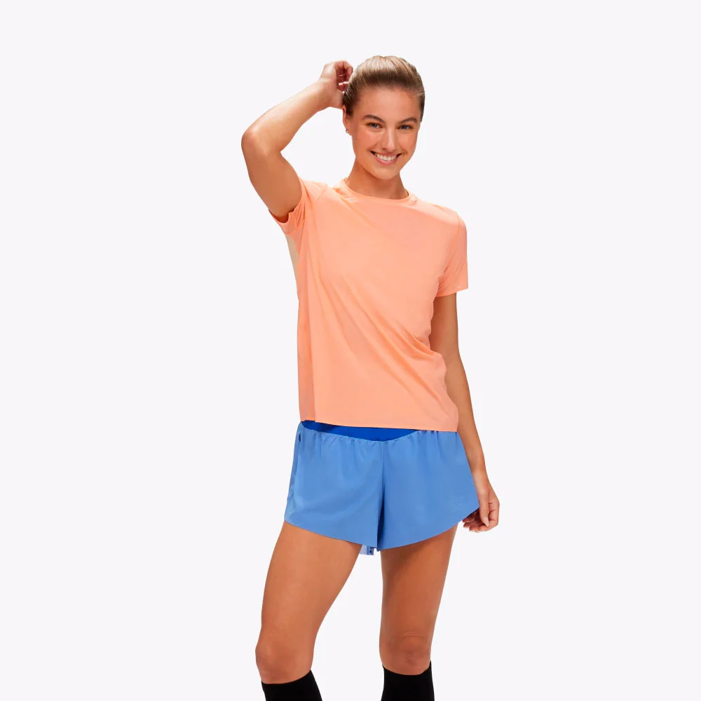 - Malla ligera perforada (un 73 % poliéster reciclado, un 7 % poliéster y un 20 % elastano) (cuerpo principal) con transpirabilidad excelente.