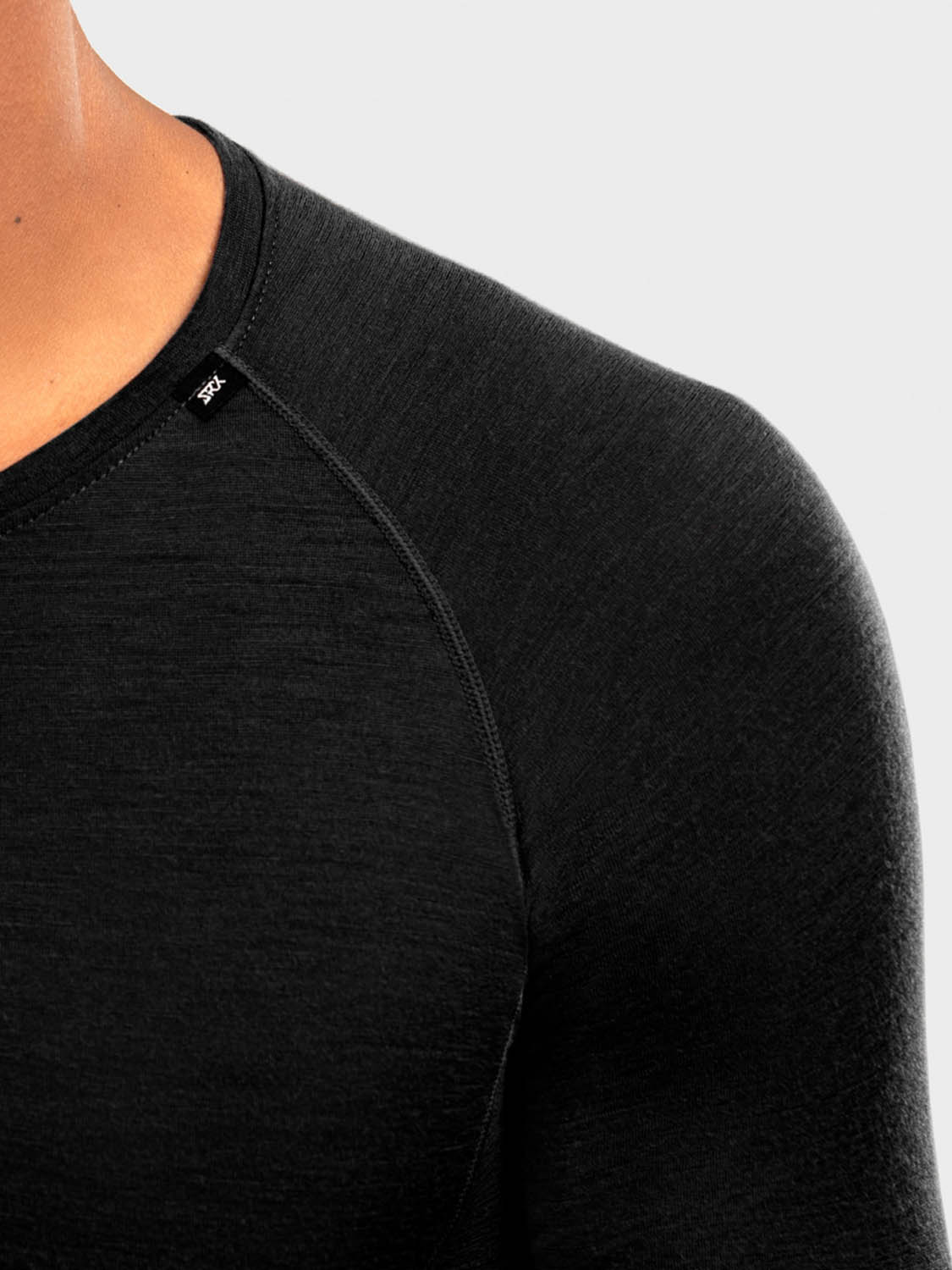 La CAMISETA LANA MERINO SIROKO SRX BLACK ICE regula la temperatura corporal para que puedas obtener el mejor rendimiento en las condiciones más cambiantes. Esta camiseta interior mantiene al ciclista fresco y seco durante el verano mediante una absorción extra-rápida del sudor y conserva el propio calor del deportista en los meses más fríos del año.