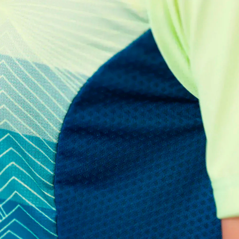 El tejido principal es el Cool2Dry®, presente en la parte frontal y las mangas. Se trata de un material elástico, con tacto suave, que seca rápido y permite una gran libertad de movimientos. Ideal para salidas técnicas o en días de calor. En la espalda, un panel de rejilla estratégica mejora la ventilación y ayuda a mantener la temperatura corporal estable, incluso cuando el esfuerzo se alarga. Además, la construcción sin costuras en los hombros evita roces si llevas mochila, un detalle que marca la diferencia en rutas largas o con desnivel.
