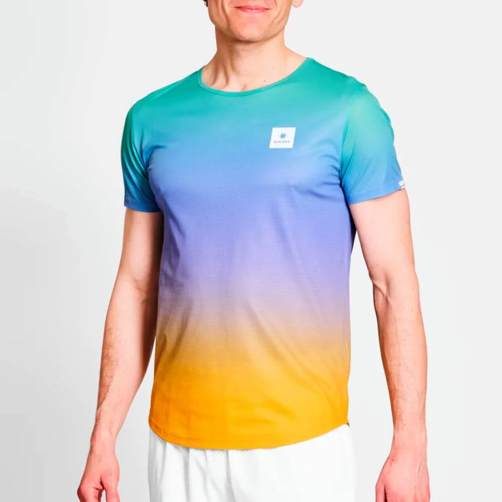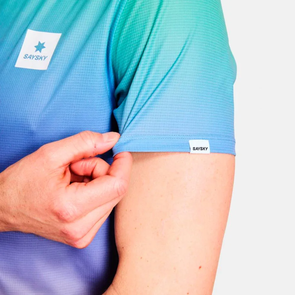 La camiseta Saysky Drip Dye Flow, es una camiseta de manga corta que presenta un ajuste tipo carrera y está confeccionada con un material de alto rendimiento, ligero y suave al tacto.