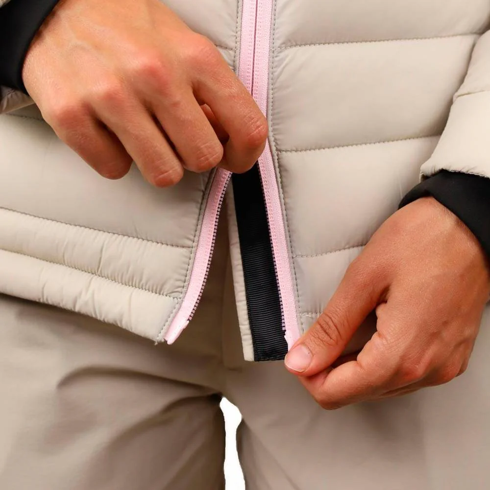 El aislamiento NeoDown combina fibras huecas de poliéster reciclado con un 24% de Sorona® BIO, generando una estructura tridimensional estable que mantiene el aire caliente en su interior. Su comportamiento térmico se mantiene incluso en condiciones húmedas, conservando volumen y confort sin apelmazarse.