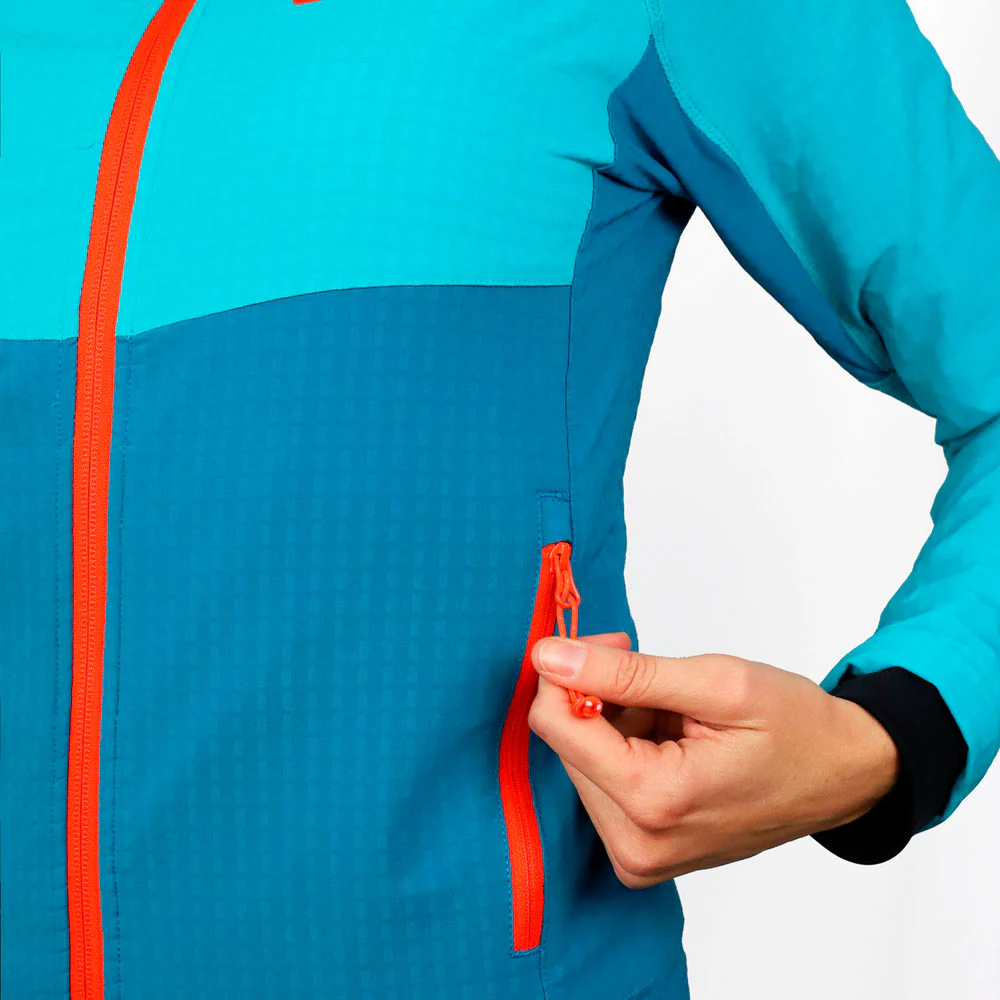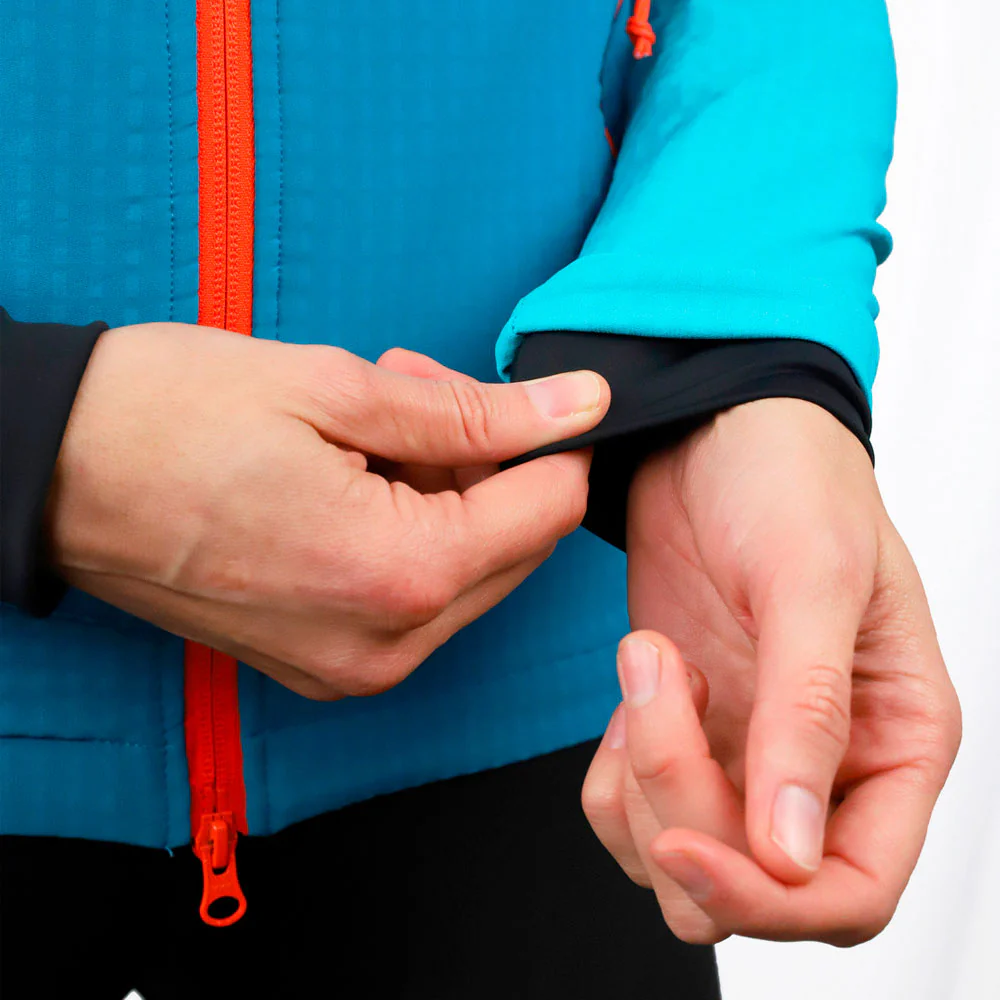 Cuenta con detalles prácticos como bolsillos laterales compatibles con arnés y un sistema de cierre rápido en la cintura. La capucha ajustable garantiza protección adicional en días de viento o lluvia ligera. La cremallera central y laterales, marca YKK® Vislon™, aseguran durabilidad y buen deslizamiento, incluso en condiciones adversas.
