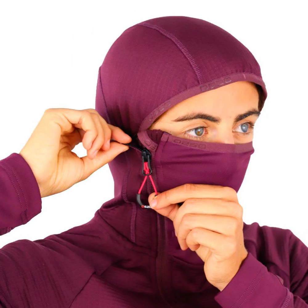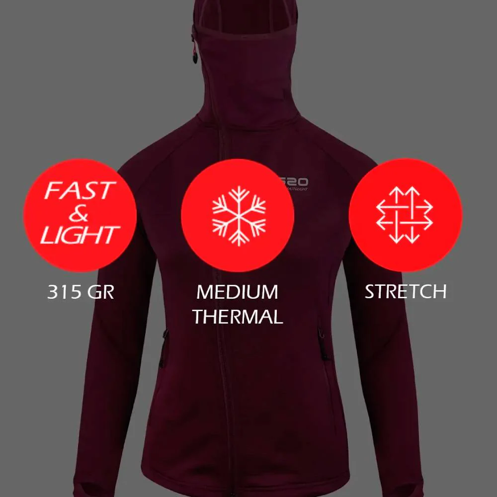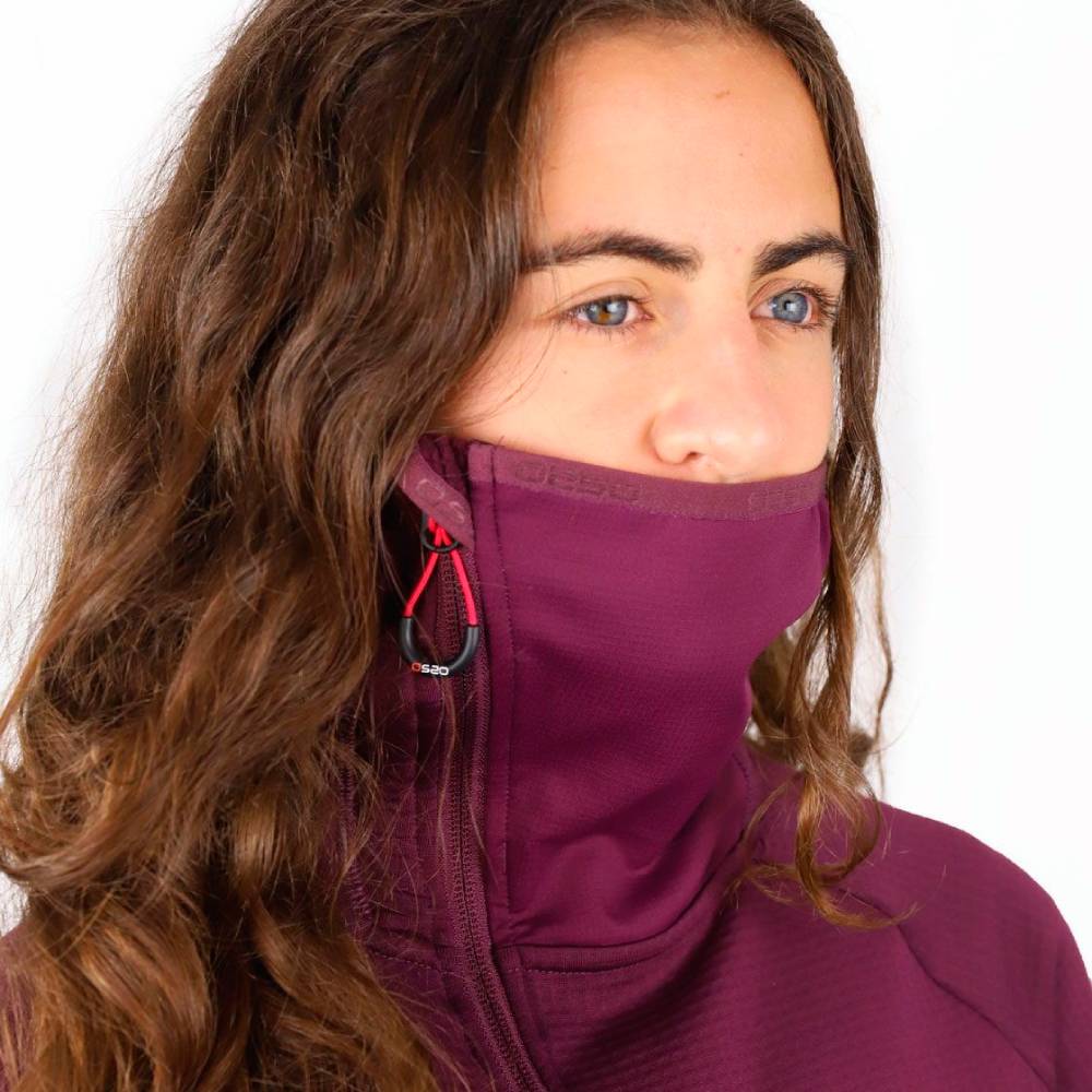 Su alta elasticidad hace que se ajuste al cuerpo a la perfección sin limitar los movimientos. La capucha ha sido milimétricamente diseñada, con un cuello que puede colocarse como máscara para proteger boca y nariz en las condiciones más extremas, y junto con su cremallera asimétrica que se cierra a un lado, evita molestias incluso tras muchas horas de uso. Los puños con agujero para el pulgar permite un ajuste perfecto para mantener protección y calor.