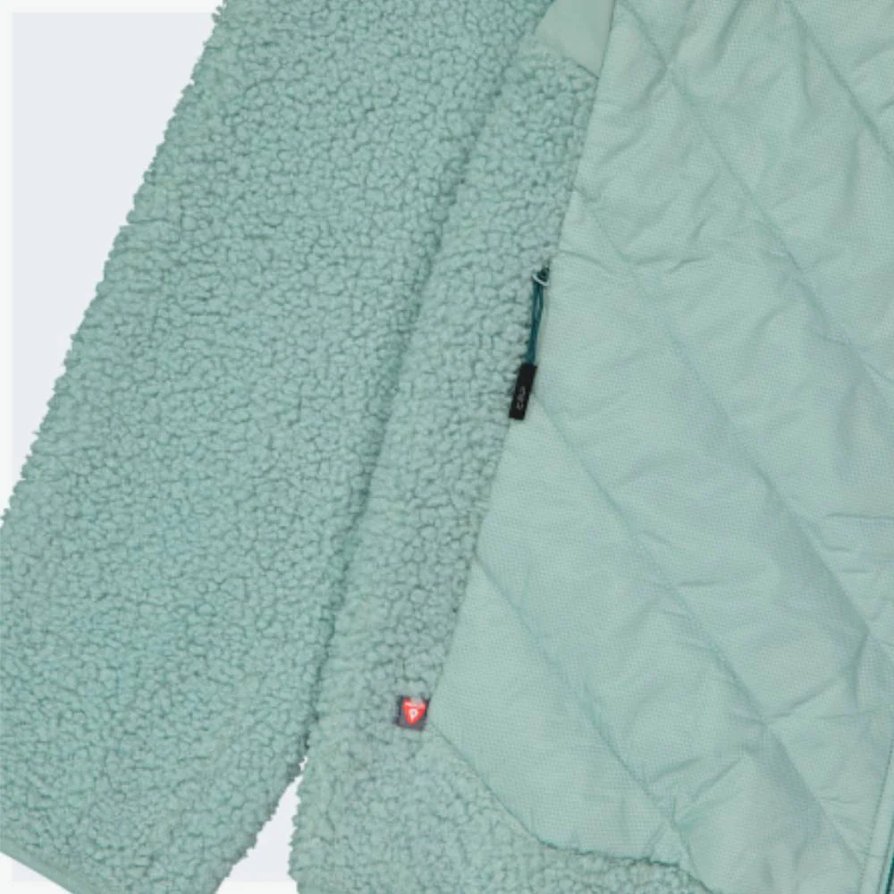 Las mangas y parte de la capucha están combinadas con forro polar tipo teddy, ofreciendo un tacto suave y una mayor sensación de confort. En el pecho y la espalda, la aislación Primaloft Black Rise, fabricada al 100 % con materiales reciclados, proporciona un excelente abrigo incluso en bajas temperaturas.