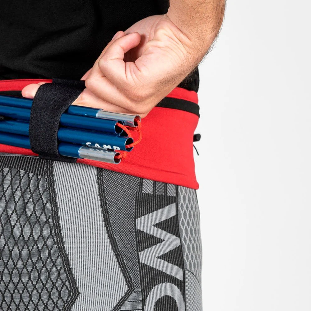 De diseño tubular, la compresión del cinturón es la que asegura mantener los objetos en su sitio, evitando que reboten mientras corres. Prenda muy elástica consiguiendo un ajuste suficiente en la cadera sin oprimir.