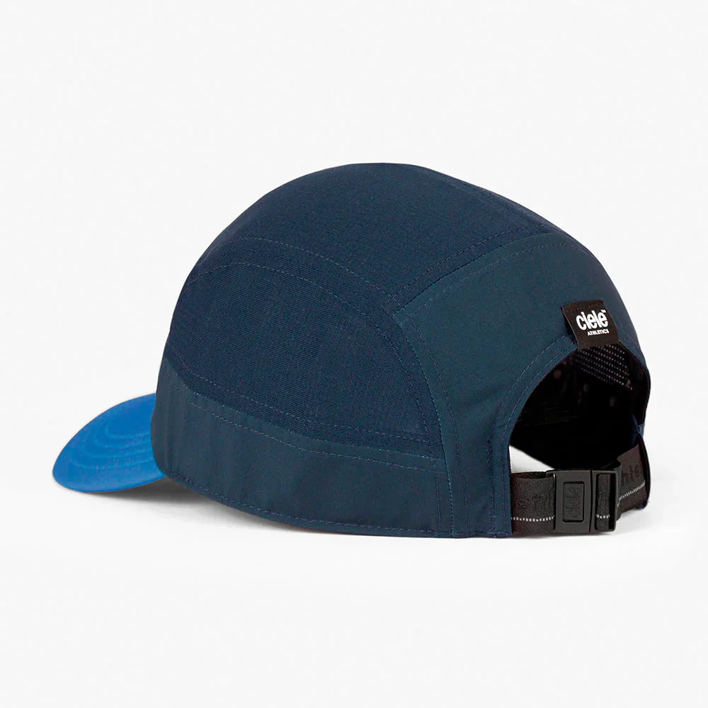 La gorra Ciele GOCap SC Comp C Cube Indigo luce una etiqueta reflectante termosellada en el frontal. Esta versión SOFTcurved del modelo Comp acierta con su diseño bicolor y el tejido elástico FLEXweave, que ofrece un ajuste cómodo y protección UPF.