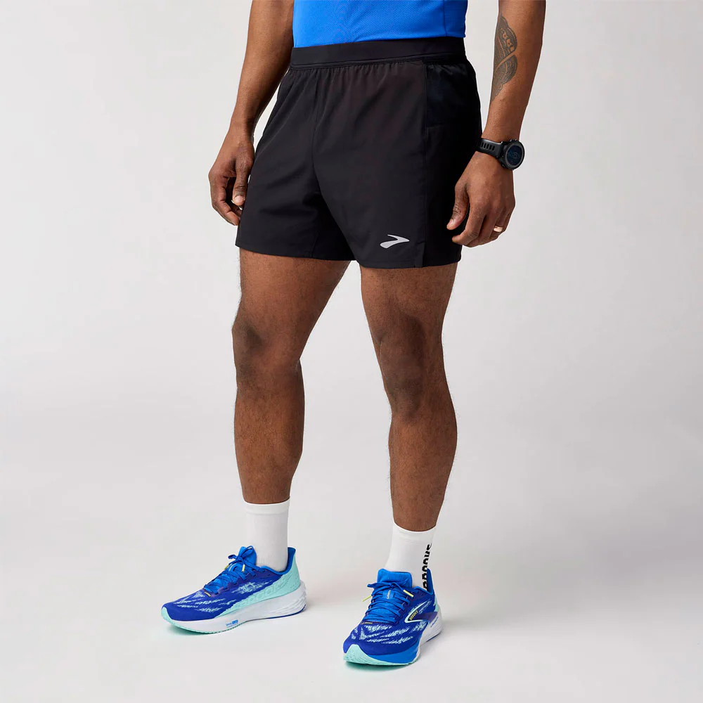 Los mejores shorts de correr para hombre están libres de distracciones para que puedas centrarte en correr. El pantalón corto Brooks Journey 5″ tiene la longitud perfecta, está hechos para reducir las rozaduras y está llenos de bolsillos.
