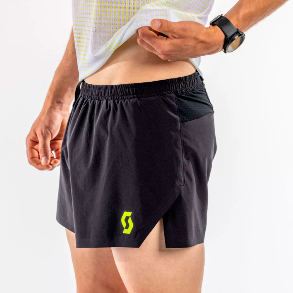 PANTALON CORTO SCOTT SPLIT MS RC RUN. Gracias a sus logotipos reflectantes y su corte deportivo, este pantalón corto con hendiduras RC Run de SCOTT presenta una imagen espectacular. El Parte interior ajustado te garantiza comodidad en las series de velocidad. El dobladillo pegado y los bolsillos traseros estratégicamente situados refuerzan las prestaciones funcionales de un diseño impecable. Un pantalón corto minimalista para días de calor.