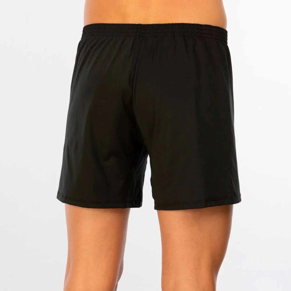 Es relativamente corto (5 pulgadas), aunque sin llegar tampoco a ser una cosa exagerada, y cuenta con un ajuste elástico en la cintura muy conseguido, porque queda muy bien sujeto sin necesidad de cordón, pero sin aflojarse lo más mínimo ni agobiar para nada.