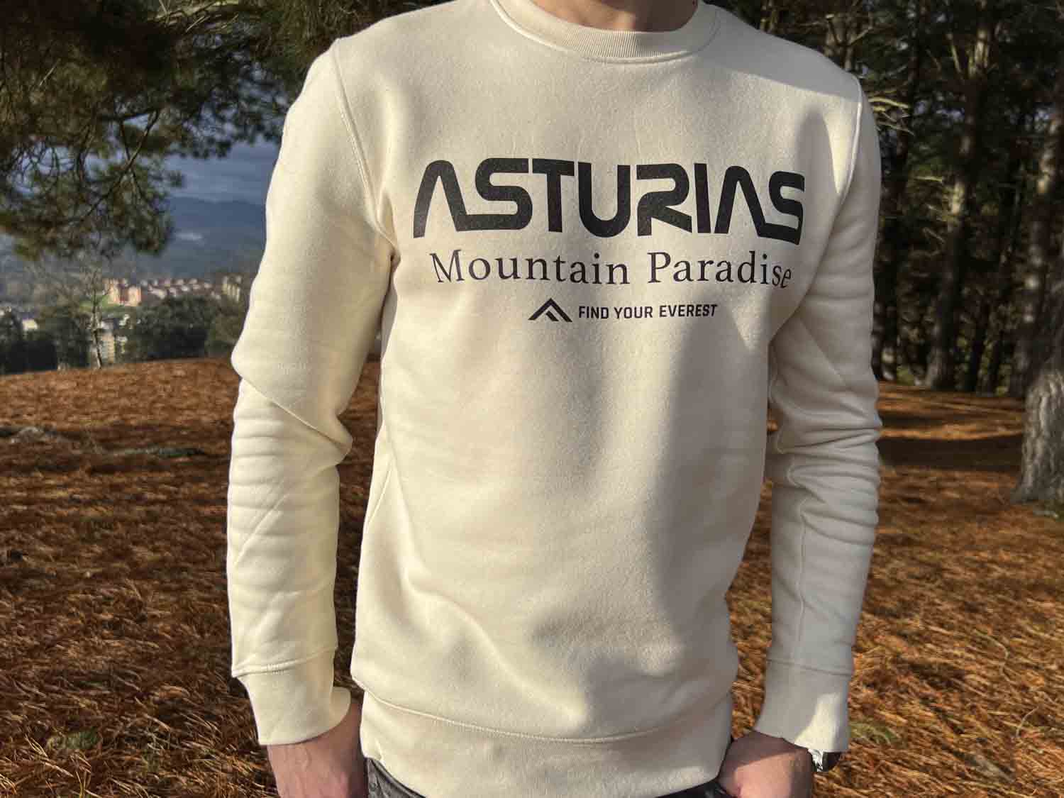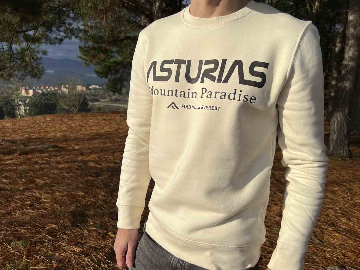 SUDADERA casual sin capucha FIND YOUR EVEREST «ASTURIAS» para todos los que somos amantes del Paraíso de la Montaña, que es Asturias ⛰