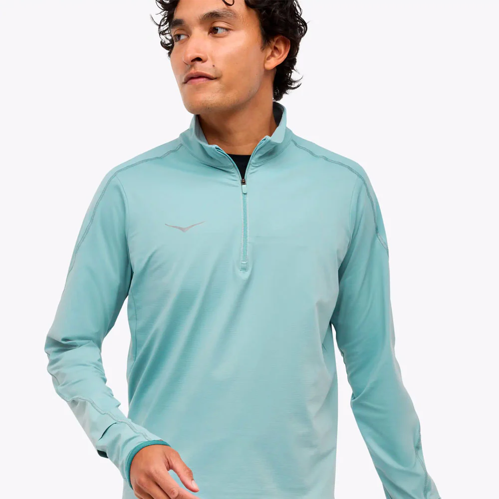 Nuestra sudadera Hoka GlideTech Quarter Zip, una prenda imprescindible para cualquier época del año, ofrece mayor calidez para las frías carreras matutinas y las sesiones de entrenamiento de última hora de la tarde. Está confeccionada en un suave tejido de microrrejilla y equipada con una cremallera de un cuarto para favorecer la transpirabilidad. Esta comodísima prenda cuenta con un bolsillo interior en el pecho para guardar las llaves o las tarjetas. Además, cuenta con una ventana para el reloj en la manga para controlar tus marcas personales. Hemos incluido detalles reflectantes para una mayor visibilidad.