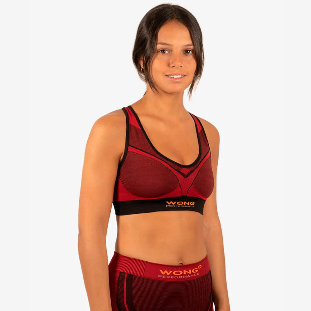 Fabricado con tecnología seamless de mínimas costuras, por lo que hemos eliminado toda costura lateral en la prenda así como etiquetas internas, evitando rozaduras con su uso y facilitando una muy alta adaptabilidad al cuerpo. No incluye elementos rígidos que puedan provocar molestias. Cinta de debajo del busto proporciona un ajuste cómodo y máximo apoyo, y la estructura en forma de V del frontal estabiliza el tejido del pecho.